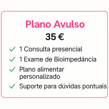 A melhor dieta é sempre a que é feita para si. Na consulta avaliamos o seu corpo, os seus hábitos e objetivos, e a partir daí criamos um plano alimentar personalizado, equilibrado e sustentável.